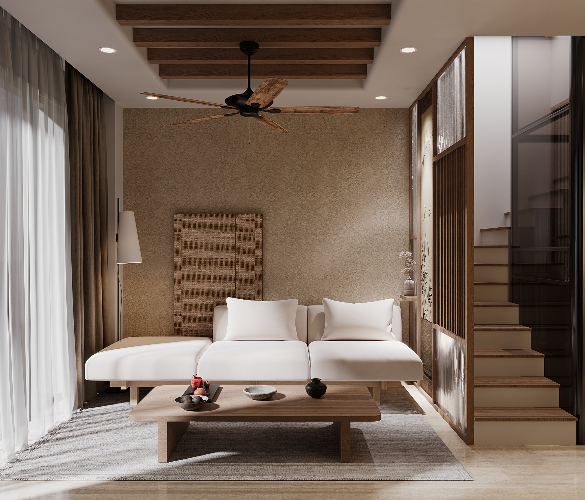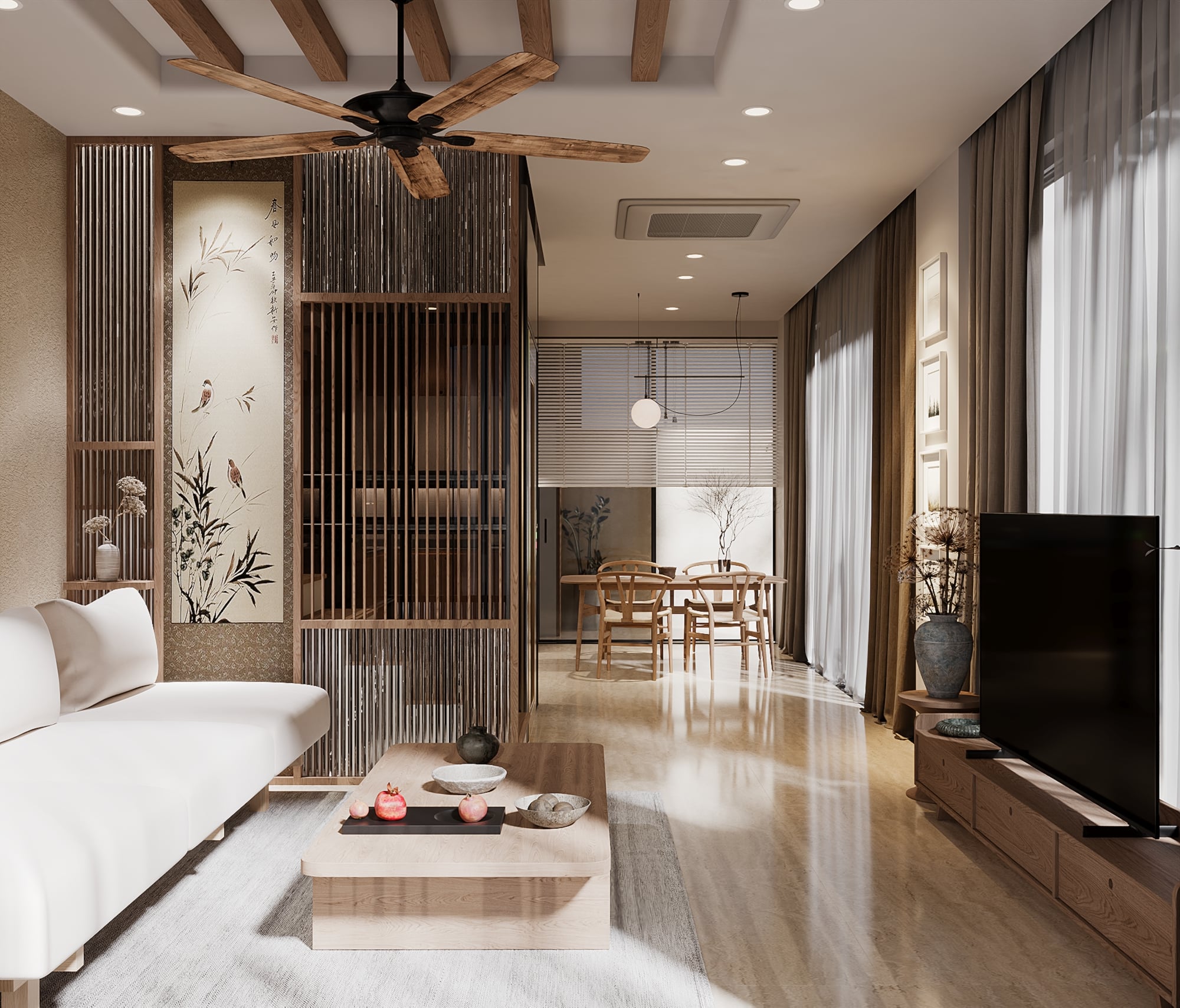 Không gian sau khi cải tạo không chỉ rộng hơn về mặt thị giác, mà còn thay đổi hoàn toàn cảm nhận ánh sáng và độ thoáng. Việc xẻ khe giúp ánh sáng tự nhiên được dẫn truyền sâu vào bên trong, tạo nên hiệu ứng không gian mở, liền mạch và giàu chiều sâu. Phòng khách từ một khu vực chức năng đơn thuần trở thành trung tâm kết nối, nơi ánh sáng, vật liệu và bố cục cùng tạo nên một tổng thể tinh tế, hiện đại.